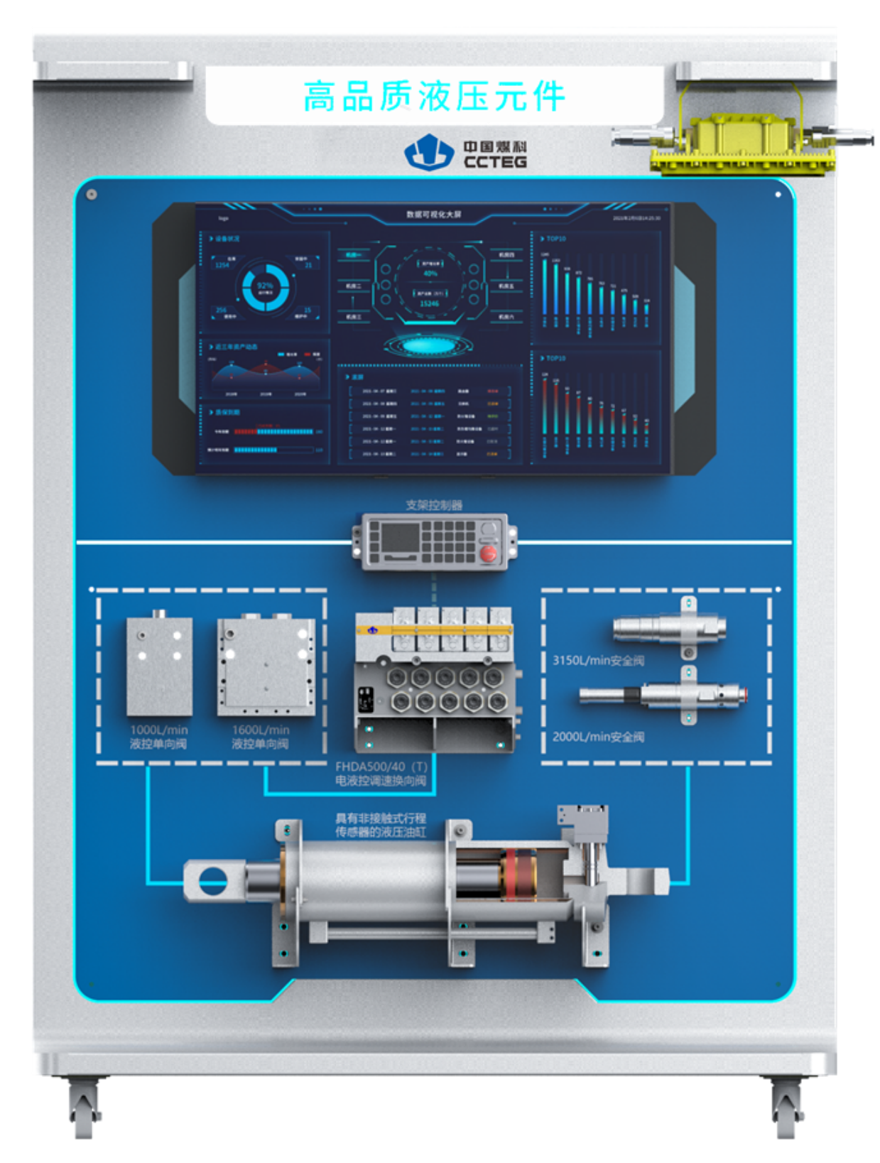高品质液压元件从流量控制精度、压力响应速度到耐污抗蚀能力全面升级,为安全智能开采筑牢长效保障。电液控调速换向阀可实现支架油缸调速控制,推移、放煤、护帮等动作更稳更准;3150L/min充气安全阀是国内首款取得2000L/min以上安标认证的立柱安全阀产品,提升立柱抗冲击能力,寿命达10000次以上;数字油缸采用非接触式雷达传感,单侧便捷安装,非接触式不易损坏。系统以全维度性能升级与核心部件创新,为工作面安全高效运行提供关键液压动力支撑。