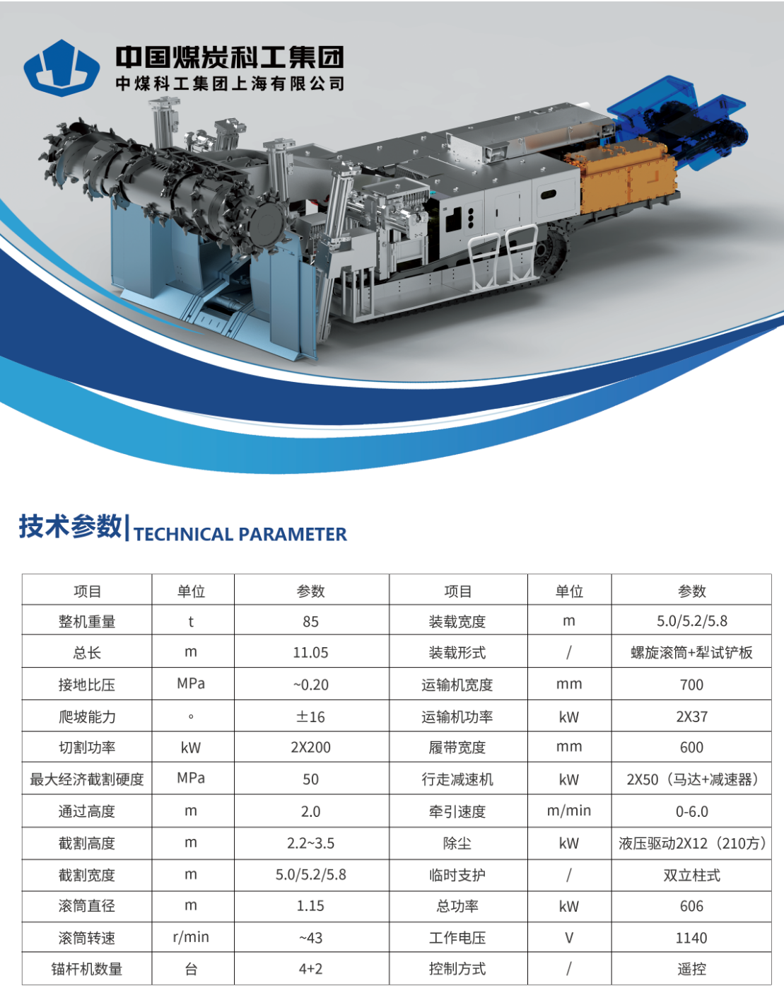 满足低矮巷道的煤巷、半煤岩巷的快速掘进施工,成套装备具有截割、装载、运输、锚杆支护、除尘等功能,并实现功能集成一体化。