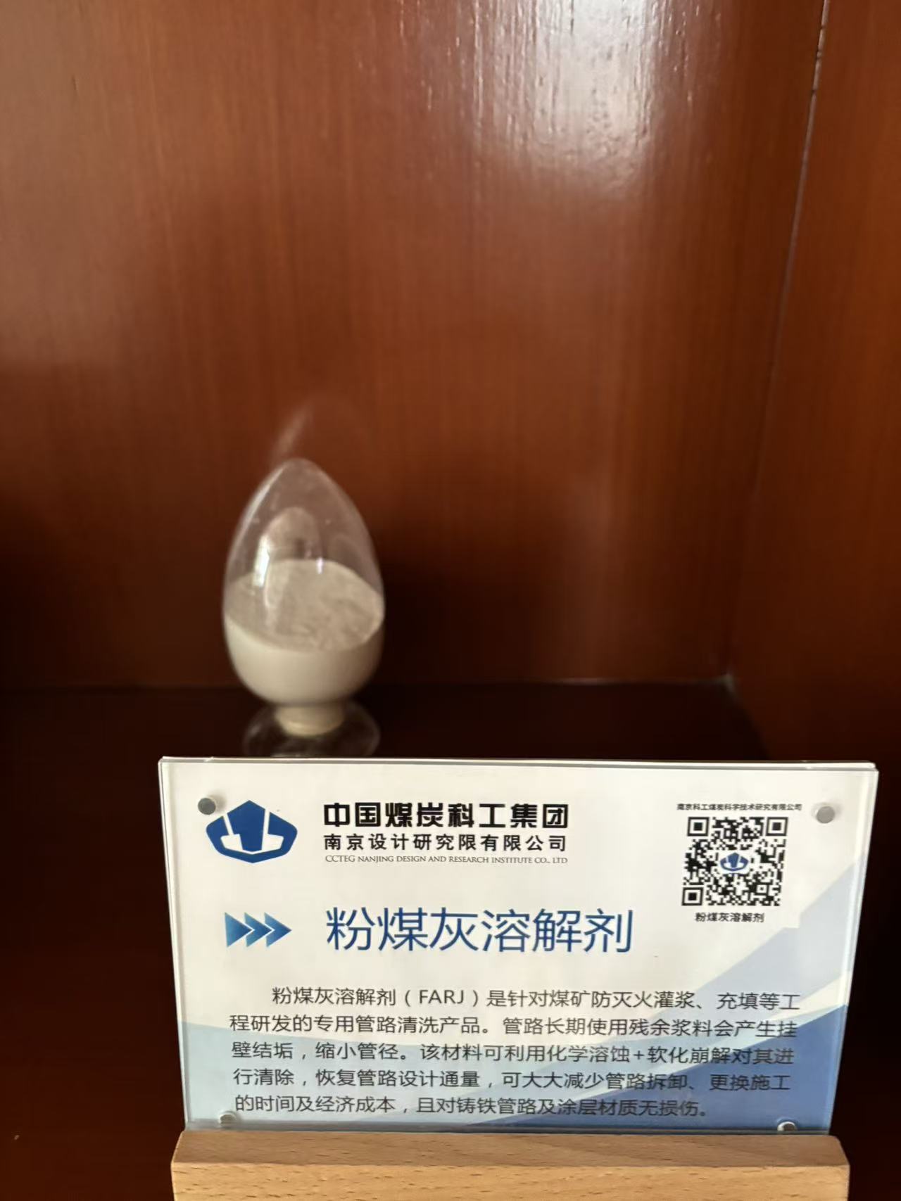 粉煤灰溶解剂(FARJ)是针对煤矿防灭火灌浆、充填等工程研发的专用管路清洗产品。管路长期使用残余浆料会产生挂壁结垢,缩小管径。该材料可利用化学溶蚀+软化崩解对其进行清除,恢复管路设计通量,可大大减少管路拆卸、更换施工的时间及经济成本,且对铸铁管路及涂层材质无损伤。