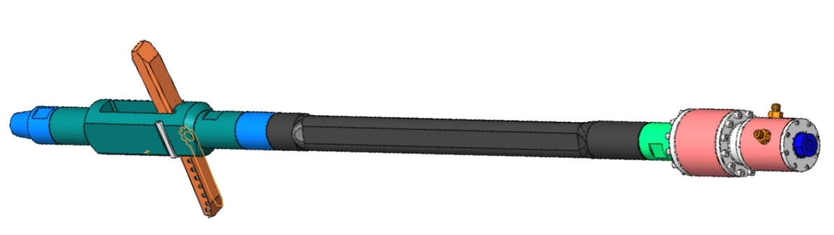 无限极传导式机械造穴装置,基于液压驱动顶杆无限极传导原理,利用钻机油压控制双通道液压驱动装置内置滑动装置,驱动环空顶芯式钻杆内部环空顶杆前移传导开启顶管式双刀扩孔器双刀臂,对煤层进行切割作业,达到增大钻孔内煤体暴露面积,提高钻孔瓦斯抽采效率的目标,扩孔半径90~200mm,扩孔过程可配套压风排渣,亦可配套水力排渣;通过液压油缸回收及钻杆内置回位弹簧组合联动回收扩孔器刀臂,成套装置适用范围广,可与普通钻机配合使用,无需额外增加设备,操作便捷,扩孔工艺性能稳定,煤层增透效果好。